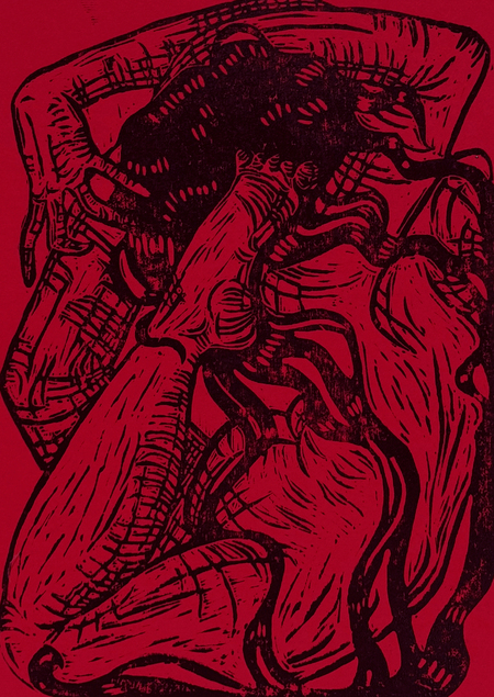 Данной работой я хотела передать ощущение тесноты и неудобства и подчеркнуть абсурдность выбора героинь линогравюр, продолжающих убеждать себя в том, что все порядке.