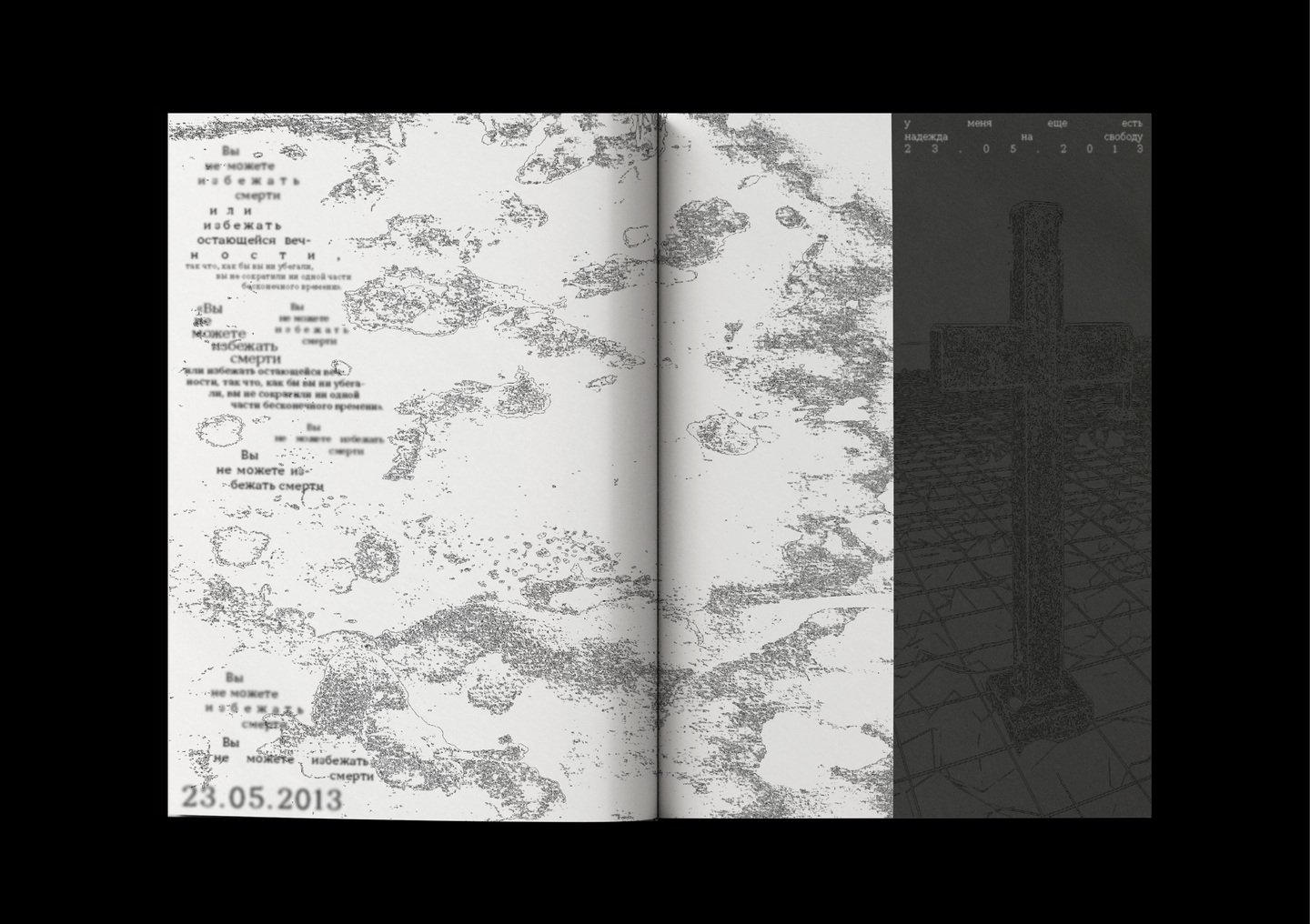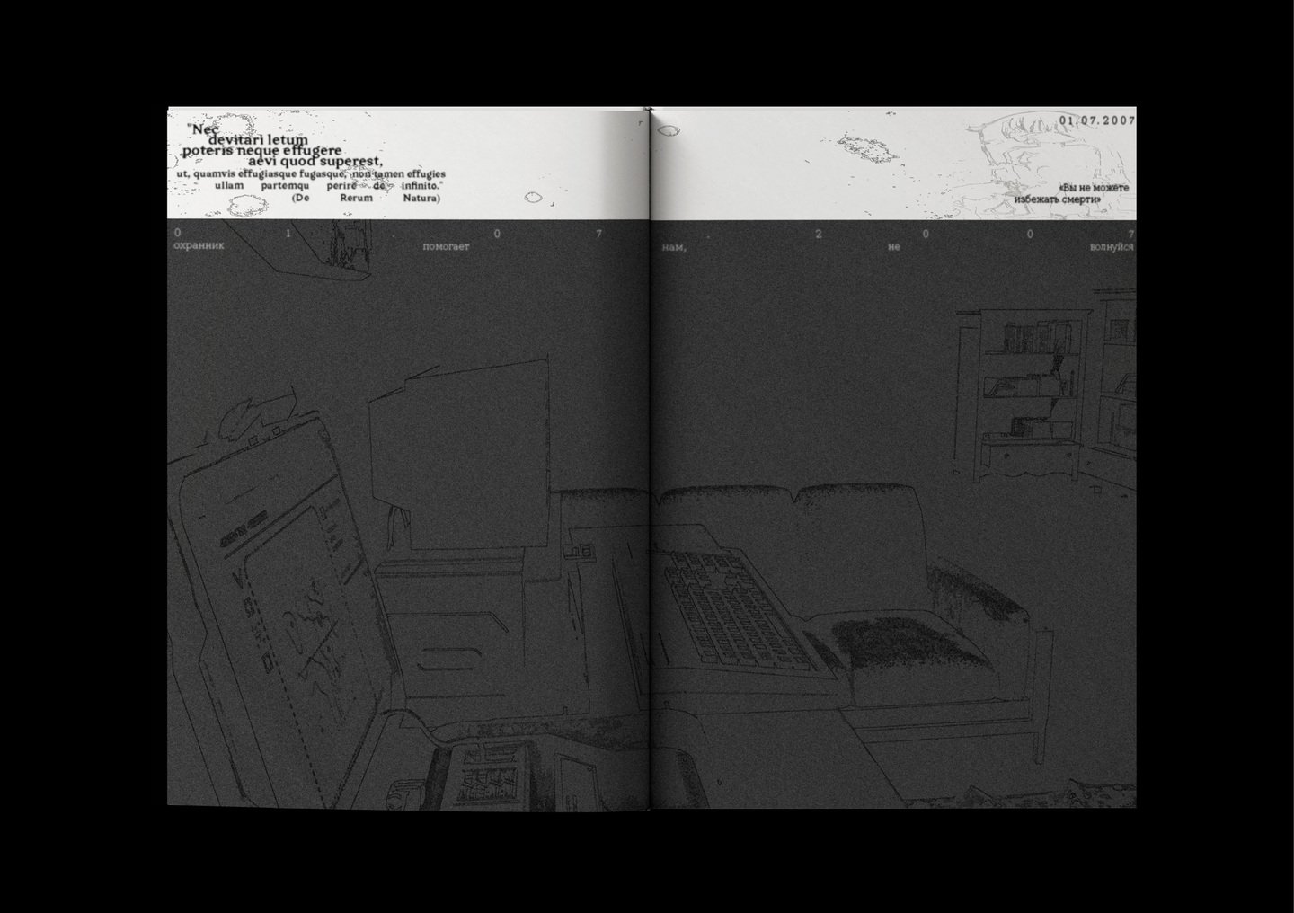 Этот зин представляет из себя дневник призрака, который живет на кладбище выдуманной компании, которая организует общение между призраками и людьми.