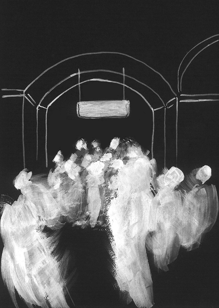 В последнее время я очень часто использую различный транспорт, и постепенно я все больше стала обращать внимание на людей, которые едут со мной. В вагонах люди обычно отдыхают, а на станциях куда-то бегут. В своем зине я захотела изобразить эти моменты.
