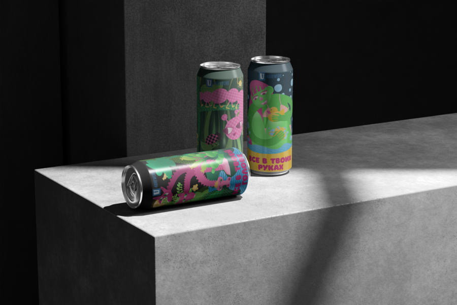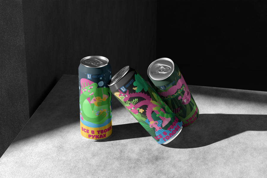 Задачей было создать три иллюстрации для упаковок банок пива. Заказчик предоставил следующие темы: Все к твоим ногам Все в твоих руках Все в твоей голове
