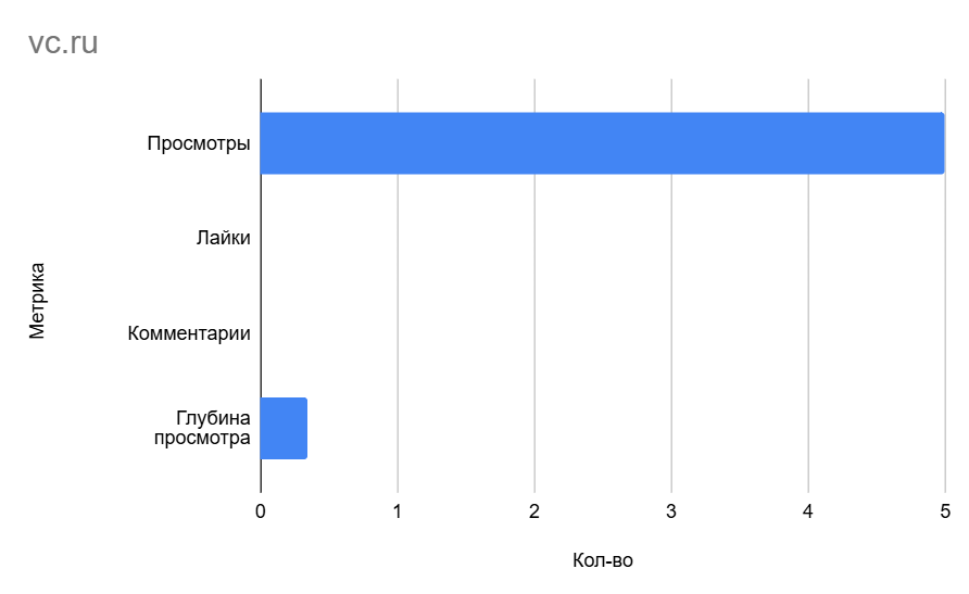 Оно показало самый высокий результат по количеству просмотров, однако, оно имеет довольно низкий уровень вовлеченности. Скорее всего, проблема в расплывчатой тематике видео, которое, в отличии от статьи не ссылается на рассказ о моём проекте напрямую. Мне хотелось проверить, какой тип контента будет воспринят лучше.