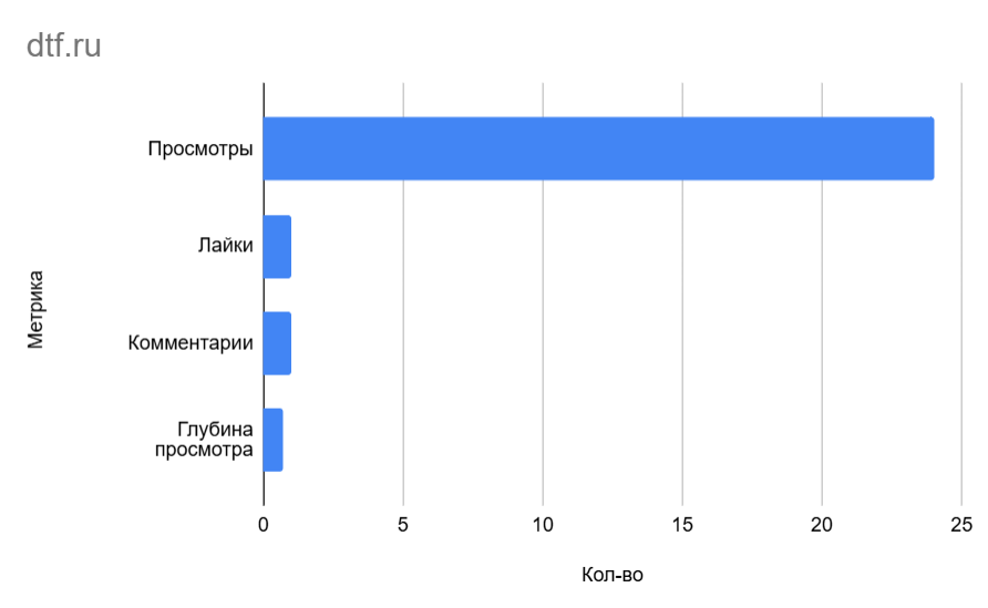 Лучшие результаты показали Youtube и dtf. На Youtube был выложен короткий ролик формата «Шортс», на dtf и остальные платформы была опубликована статья.