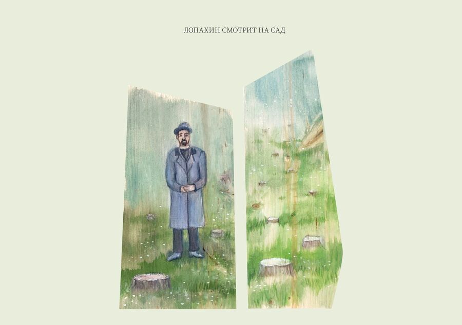 Вишнёвый сад — проект, посвященный одноимённому произведению Чехова. Деревянная инсталляция является метафорой утраты, разрушения и неизбежного хода времени. Она изображает фрагменты срубленного вишнёвого сада: пни, спиленные стволы, опавшие ветви. Композиция передаёт ощущение пустоты и ностальгии, отсылая к ключевому образу чеховской пьесы — гибели старого уклада жизни.