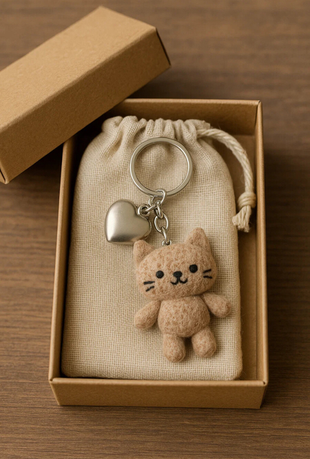 Мой промпт для генерации иллюстраций к статье: «Сгенерируй изображение: внутри маленькой крафтовой коробочки лежит тканевый мешочек, а на тканевом мешочке лежит обвес (это должен быть брелок и на нём металлическое сердечко и плюшевый котик). Это изображение нужно мне для того, чтобы визуализировать упаковку для моих брелоков ручной работы.»