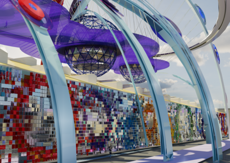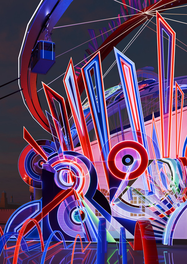 и света — все это очень похоже на цветовой взрыв. Именно эту совокупность ярко выраженной геометрии, сочных цветов и искрящегося света я хотела передать в своем графическом фасаде.