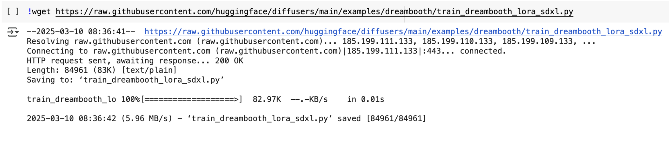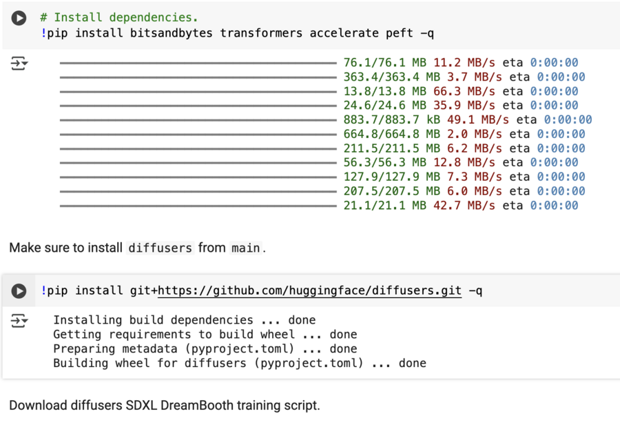 1. Сначала загружаем и проверяем все необходимое: - Проверяем графический процессор; - Обновляем библиотеки; - Устанавливаем последнюю версию библиотеки diffusers - Загружаем специальный обучающий скрипт с github.
