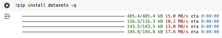 7. Запускаем процесс обучения: - Устанавливаем библиотеку datasets; - Запускаем команды accelerate для обучения модели.
