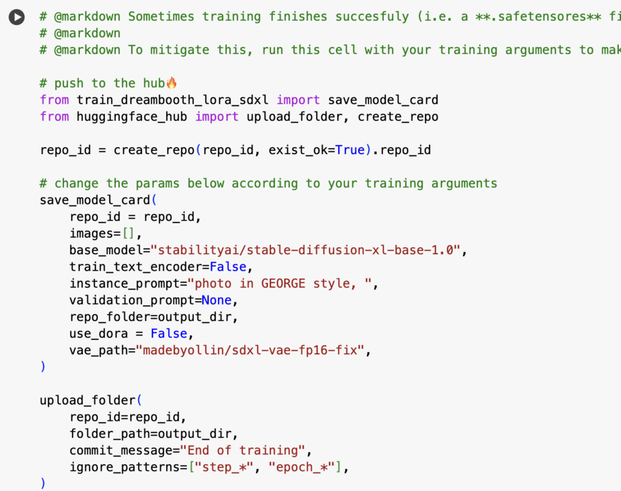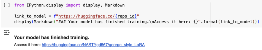 8. С помощью кода автоматически сохраняем наш код на huggingface hub - Получаем ссылку на сохраненную модель