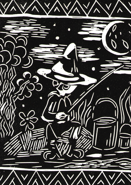 Для работы в технике линогравюры я выбрала именно эту тему, потому что мне кажется, что особенности такого способа высокой печати отражают неопределённость, таинственность и наивность мира Муми-троллей.