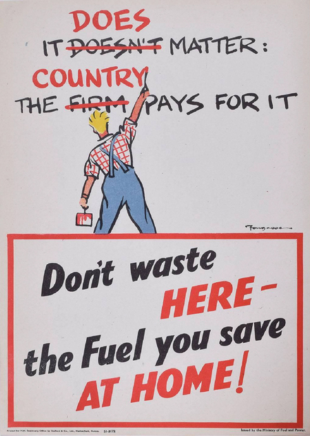 1. «It does matter the country pays for it. Don’t waste here the fuel you save at home», by Cyril Kenneth Bird, between 1939 and 1946 // 2. «Turn That Gas Down», by unknown artist, between 1939 and 1946