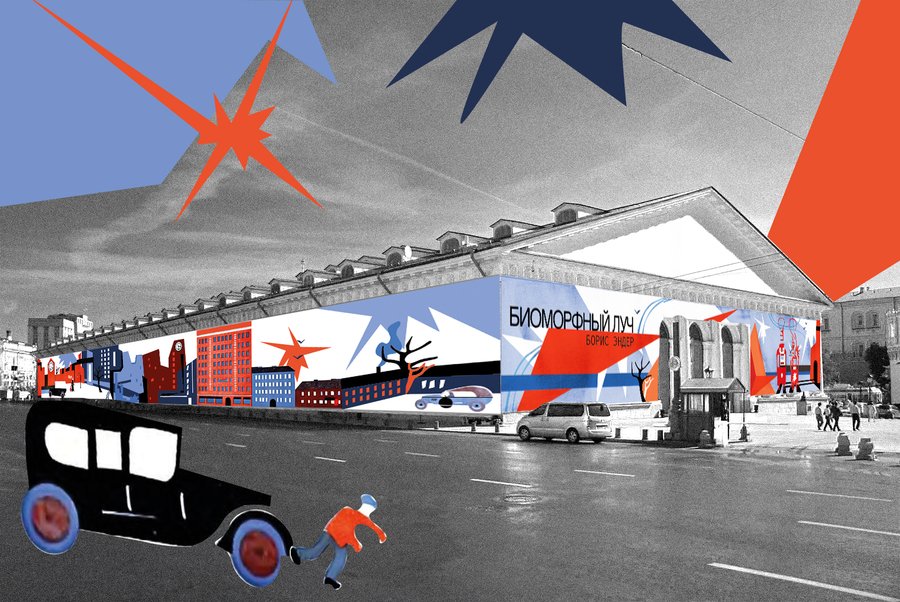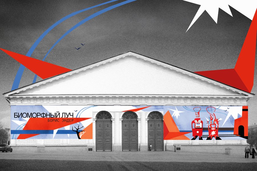 Биоморфный луч — проект, посвященный творчеству Бориса Эндера — художнику-авангардисту, одному из основоположников направления «биоморфной» абстракции. За основу проекта были взяты его иллюстрации к книге Осипа Мандельштама «2 трамвая», стилистика и сюжет этой серии работ прослеживается на протяжении всего проекта. В своей работе я создала временные фасады (графический и архитектурный) московского Манежа и айдентику к выставке Бориса Эндера.