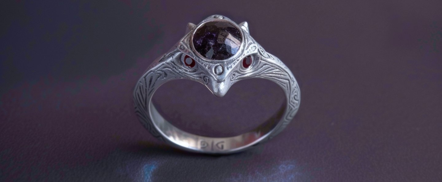 /Image promt: elegant silver ring with an embedded gemstone set inside the inner band, minimalist and refined design, high-quality macro jewelry photography, soft diffused lighting, luxurious metallic texture, subtle reflections, inspired by mythic spirit jewelry aesthetic, centered composition, clean dark background, cinematic product lighting, detailed close-up, vector-sharp clarity --ar 16:9 --v 6
