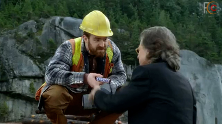 Кадры из рекламного ролика Snickers с Робином Уильямсом и Бобкэтом Голдтуэйтотм