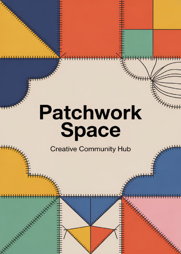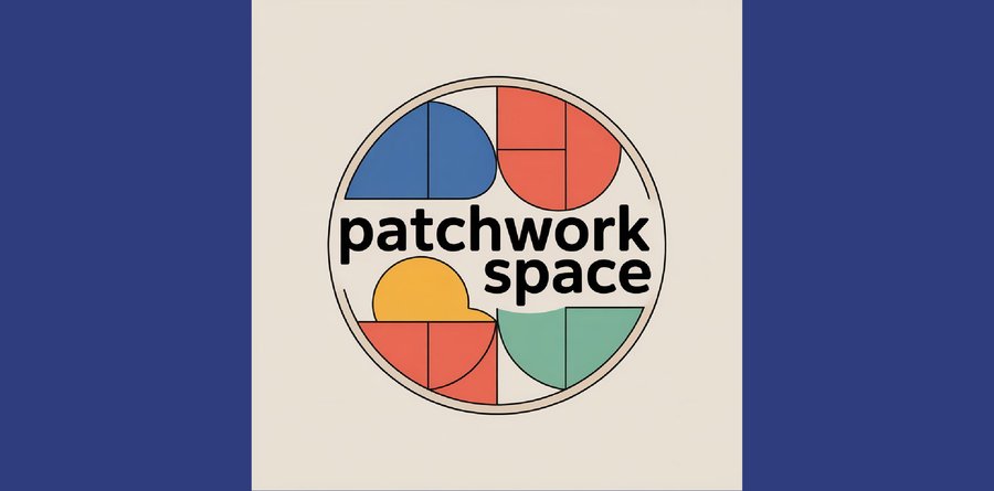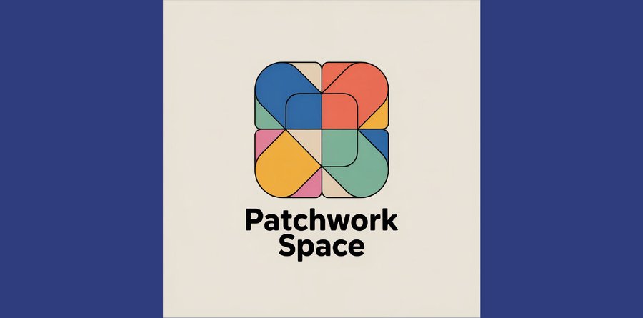 logo promt: Generate logos for a creative community space «Patchwork space» inspired by the concept of patchwork (quilting). The titles should reflect unity in diversity, creativity, and collaboration. Make them modern, simple, and memorable, suitable for a student creative hub. Colors: Ultramarine (2F3C7E), Coral (F76C6C), Ochre Yellow (FFD166), Mint Green (06D6A0), with neutral Beige (F4F1DE).