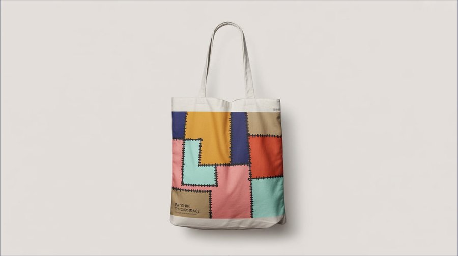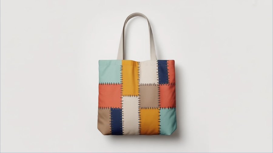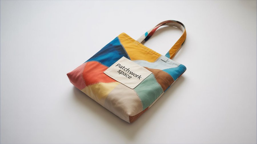 Запрос в ChatGPT: Напиши промт для создания изображения с сумкой-шопперов от пространства «Patchwork space».