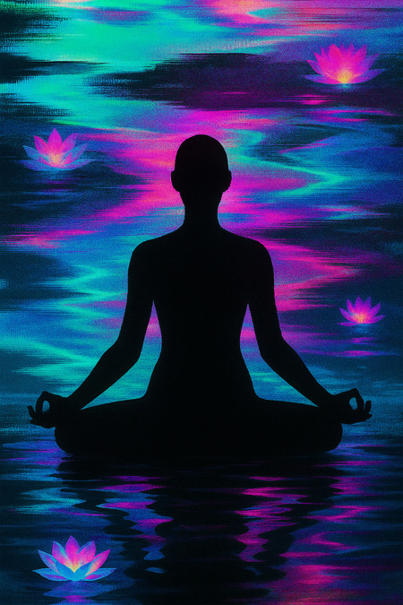 Я загрузила в DALLE-3 собственные исходные изображения из проекта — графику, логотип, элементы айдентики и фирменную цветовую палитру — в качестве визуальных референсов. Эти изображения помогли алгоритму понять характер бренда: мягкое свечение, глитч-эффекты, отражения воды, перламутровые поверхности и мотив лотоса как символ внутреннего покоя.