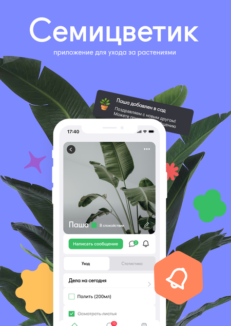 Приложение для ухода за растениями и общения с ними. Помогает избегать неожиданных болезней и проблем с растением. Приложение включает в себя трекер дел, а также чат, который позволяет общаться со своим зеленым другом и узнавать его все лучше и лучше