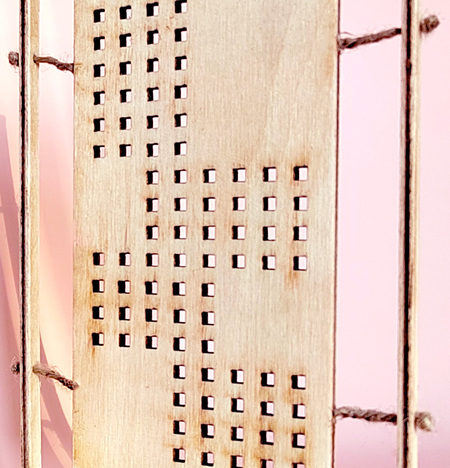 Брус 50×70×2000, брус 30×30×2000. Фанера: толщина 20 мм. Деревянный шкант. Канат