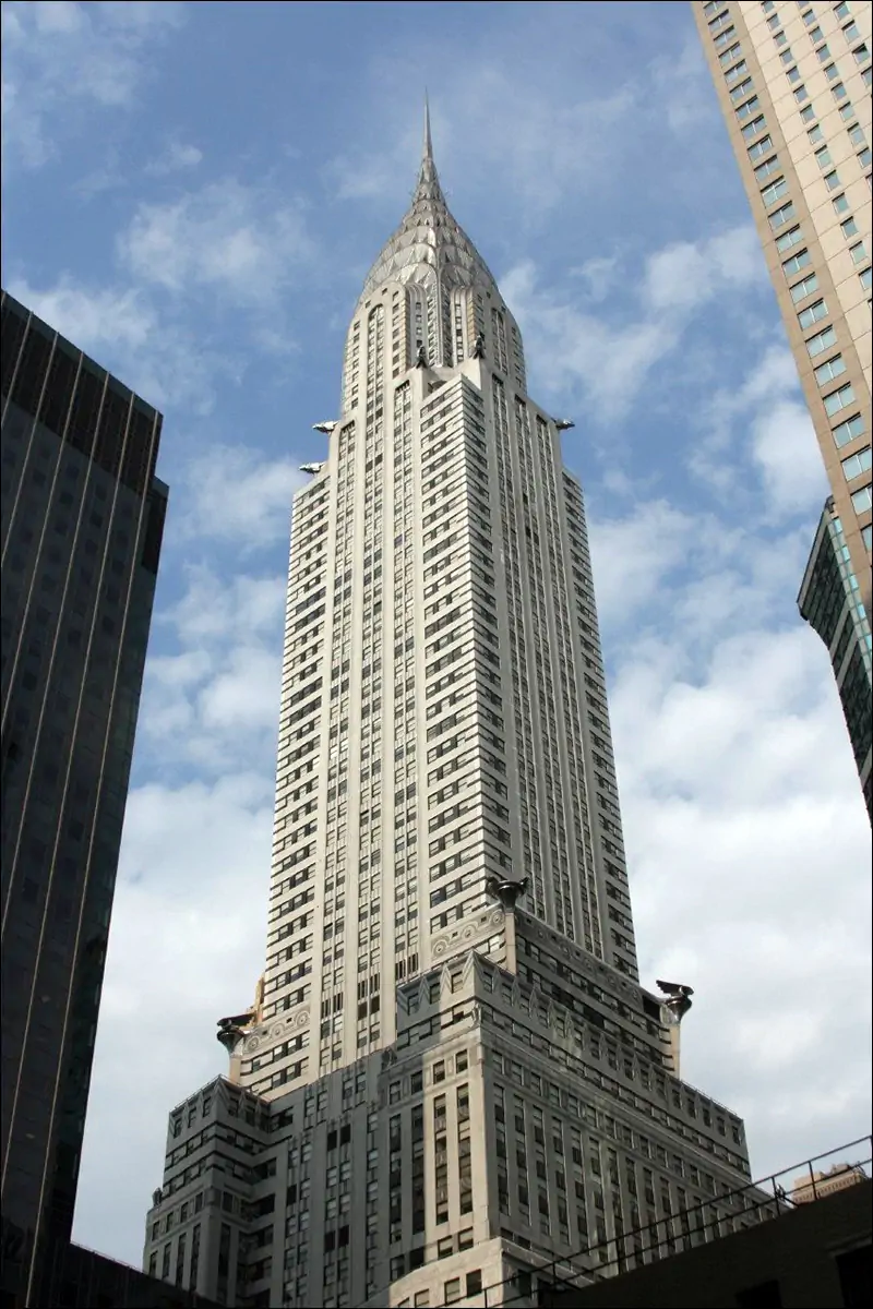 Этот небоскрёб — квинтэссенция урбанистического Ар-деко. Металлический шпиль, машинные символы в деталях фасада, устремлённость всей формы вверх и ритмичность, всё подчёркивает промышленную мощь и роскошь, которую она может превнести в мир. Это здание целый манифест прогресса и элитарного успеха, типичный для капиталистической архитектуры начала XX века.