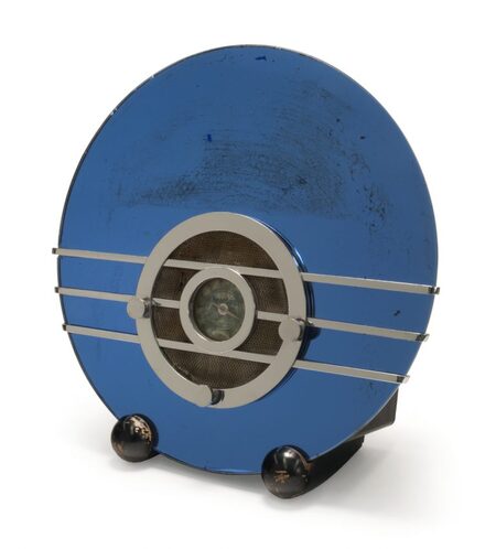 В первом случае мы видим радио, как, своего рода, арт-объект. Форма не утилитарна, а эффектна: хромированные ножки, зеркальный круг. Оно скорее выступает в роли украшения дома.