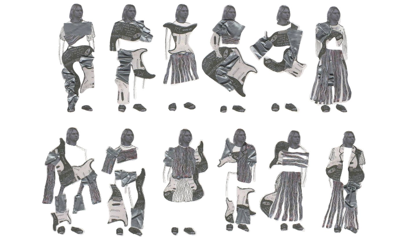За основу коллекции была взята разбитая гитара Курта Кобейна, которую тоже пытались собрать заново с помощью изоленты, однако прежнее состояние ей уже не вернешь.