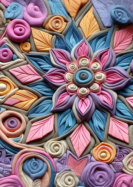 Для создания картинки использовался искусственный интеллект: https://chadgpt.ru/ Запрос: «Нарисуй паттерн с пластилином. Используй розовый, фиолетовый, голубой и желтый цвет. В картинке НЕ должно быть людей. Только картинка из пластилина.»