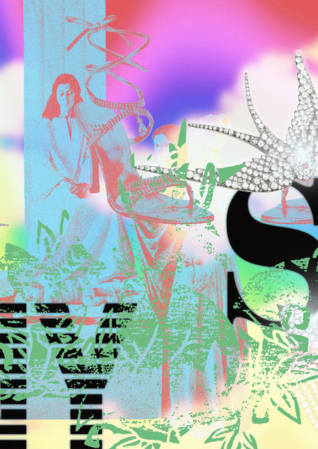 Главный визуальный прием в зине, созданном во время первого модуля, — контраст роскоши и перенасыщенного китча. Продолжая исследовать феномен коммерческого искусства, я соединяю в промо-ролике яркие коллажи и отсылки к аукционам современного искусства.