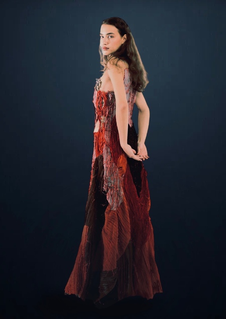 Центральным элементом становится платье, выступающее в качестве метафорического воплощения человека, чье благополучие и выживание напрямую зависят от состояния коралловых рифов. Само платье представляет собой «полотно», сотканное из множества фрагментов разноцветной ткани, имитирующих сложную, динамичную структуру и текстуру кораллов.