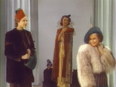 Слева: сцена из фильма «Мода 1938 года» (Vogues of 1938, 1937, реж. Ирвинг Каммингс)