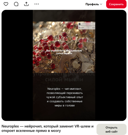 Видео на Pinterest «Neuroplex — нейрочип, который заменит VR-шлем и откроет вселенные прямо в мозгу» https://pin.it/1iclgXRNQ