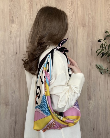 В основе предметной съемки — стилизация женского платка, то, как по-разному можно интерпретировать этот аксессуар в образ. Также идея заключается в спадание платка с головы вниз, что подчеркивает его легкую и летящую фактуру.