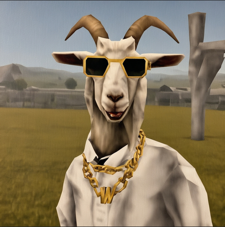 — a painting in WHATOONEE style, a capybara takes a shower — a painting in WHATOONEE style, a goat standing in a field wearing sunglasses and a gold chain with the letters swag around its neck