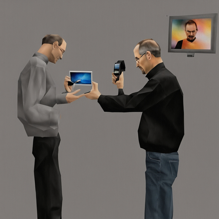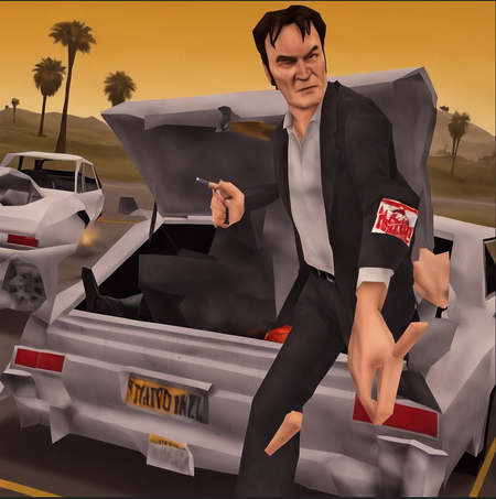 — aa painting in WHATOONEE style, quentin tarantino looks in the trunk of a car — a painting in WHATOONEE style, steve jobs admires samsung