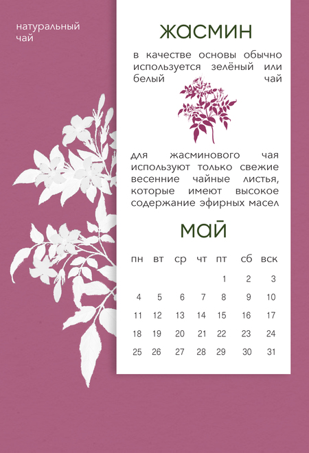 Каждый месяц — это особенная чашка чая, которая отражает настроение времени года и помогает прожить его глубже. Календарь становится не просто датами, а ритуалом замедления: открыть новую страницу, налить чай месяца, почувствовать его вкус и настроиться на время.