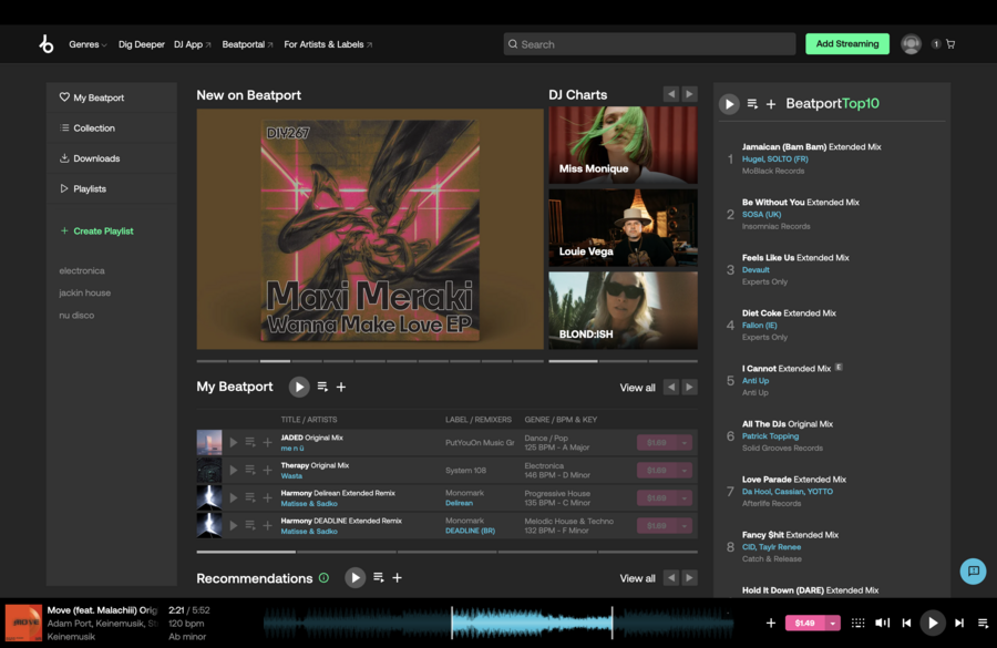 Скриншоты музыкальныъ библиотек: 1) Beatport; 2) Soundeo; 3) LoselessRobot