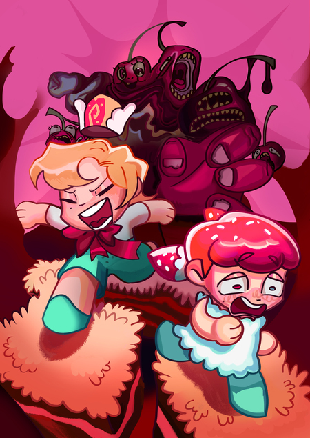 This world was the window for the pastry project. His only success was like a fairy tale: living creatures of sugar, conscious of themselves. But it didn’t go according to plan when the burglars killed him. The blood of the creator flooded his creation, creating monsters that attacked the sugars. When the red syrup spilled on the ground, the fairy tale became a nightmare.