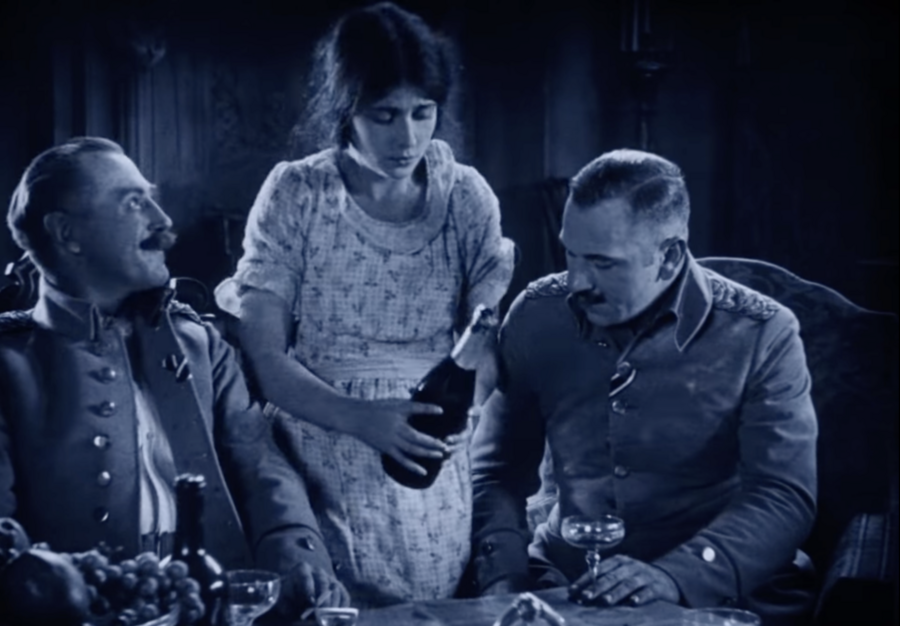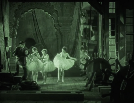 Фильм «Глупые жены» окрашен в разные цвета, но тем не менее там можно увидеть и монохромную кинематографическую палитру, которая была технической нормой для эпохи немого кино.