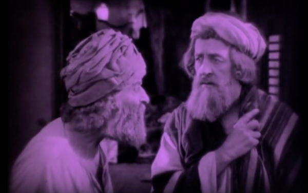 Розовый в религиозном контексте ассоциируется с божественным светом, мистическим откровением и святостью. В сцене с двумя мудрецами (слева) и женщиной в покрывале (справа) цвет подчеркивает: Важность разговора, возможно, обсуждение судьбы Бен-Гура или пророчества. Молитвенное состояние женщины. Создает ощущение, что она находится на грани земного и небесного.