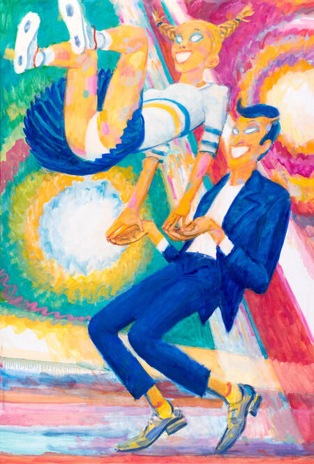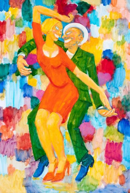 В большинстве работ этой серии действительно не изображено пространство, где танцуют герои-призраки. Вместо этого мазки цвета складываются в блики, цветомузыку, и, как утверждает сам Каллима, задают композиционный ритм. Как и в серии «Все на продажу», при долгом разглядывании этих работ образы начинают распадаться на абстрактные цветовые пятна.