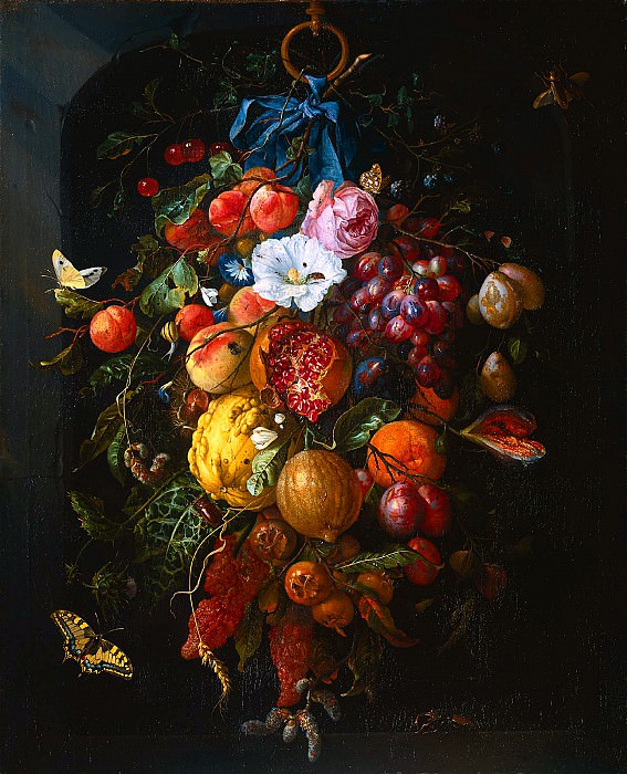 [1] Натюрморт с фруктами и омаром (около 1648–1649 годах) [2] Большой натюрморт с птичьим гнездом (1675 год) [3] Фрукты и дары моря (1659 год)
