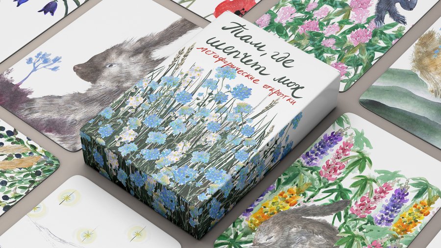 Метафорические открытки вдохновлены лесными обитателями и ритмами природы — спокойными, простыми, настоящими. Они помогают ненавязчиво заглянуть внутрь себя, если захочется остановиться и прислушаться. Это визуальные подсказки для тихого диалога с собой.