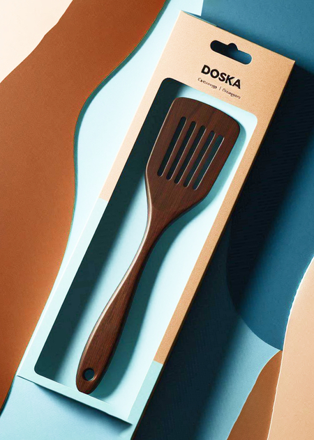 1. A sophisticated but strict logo from the text «doska» for a kitchenware company, with sharp serifs, without additional elements, only text. 2. Pastel-colored slabs for a kitchenware brand, no more than five colors, must be brown and blue. 3. A dark teak kitchen spatula in the air on a bright colored background in a studio. A spatula in a stylish plastic rectangular package, the package must say «doska». The design must be light and sophisticated. Use blue, brown and beige colors. 4. A loofah sponge in a transparent package of the «doska» brand. Use blue, brown and beige colors in packaging. 5. A wooden lid for a glass in a transparent package of the «doska» brand. Use blue, brown and beige colors in packaging. 6. A poster for a kitchenware store that uses teak wood. The design must be light and sophisticated. The poster must say «doska». Use blue, brown and beige colors. 7. Truck body branded for delivery from the shop «doska», which sells teak kitchenware. Use blue, brown and beige colors. 8. Interior of the wooden kitchenware shop «doska». The interior should resemble the Scandinavian style.