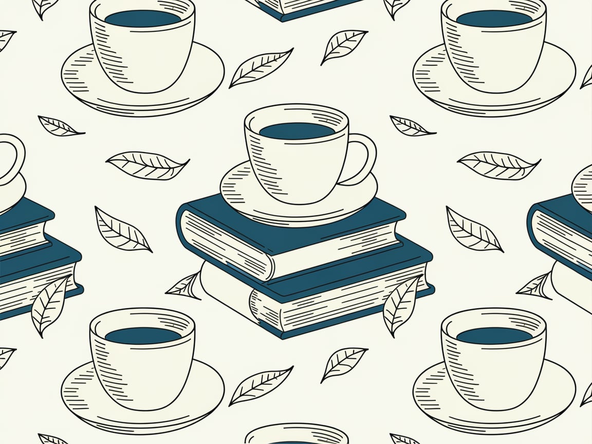 Фирменный паттерн сгенерирован ideogram.ia («Create a simple vector pattern of cups, books, and tea leaves. Clean lines, lots of background, repeatability, just lines, no color»).