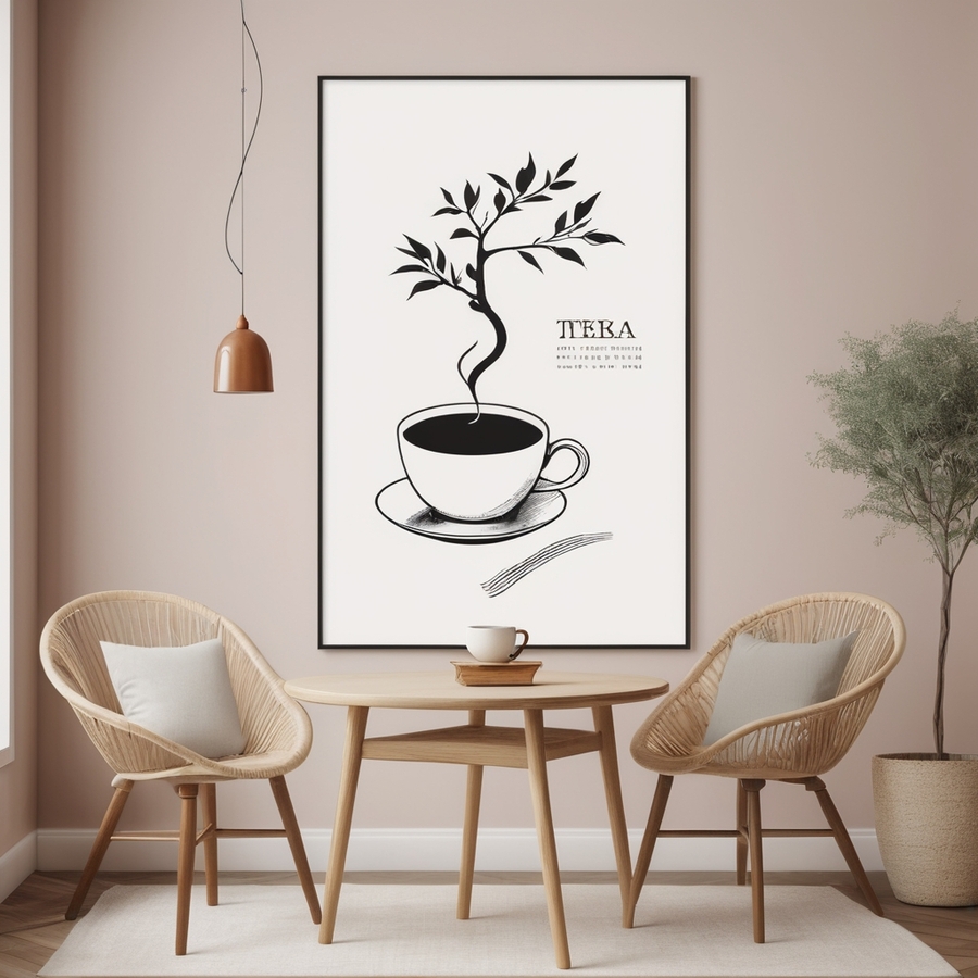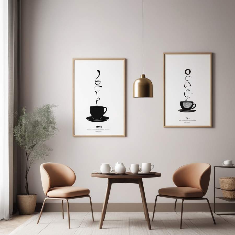 Мокапы от leonardo.ai (промт: «Interior posters are simple and cozy for a literary tea room» (AlbedoBase XL; Graphic Design 3D))