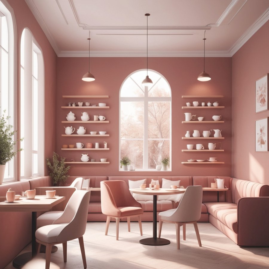 Первый вариант от leonardo.ai (промт: «Cozy tea room, minimalistic interior, warm colors, lots of light and comfort» (AlbedoBase XL; Graphic Design 3D))