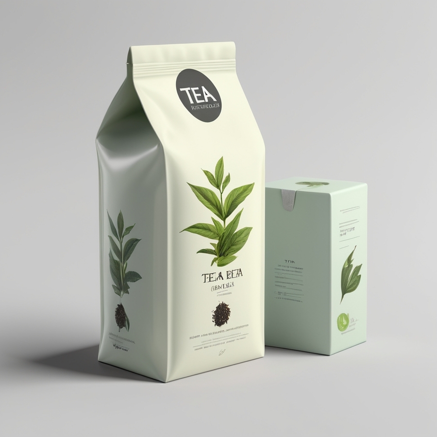 Дизайн упаковки от leonardo.ai (промт: «A mockup of a tea bag. Simple, without design» (AlbedoBase XL; Graphic Design 3D))