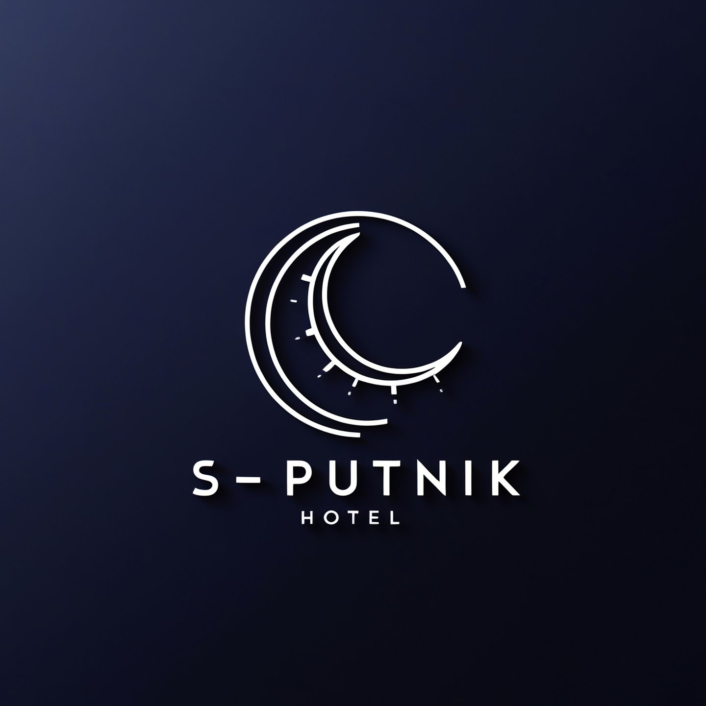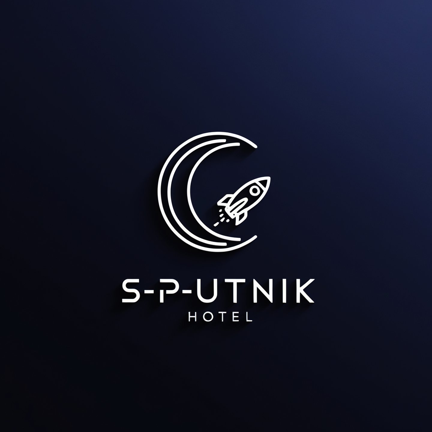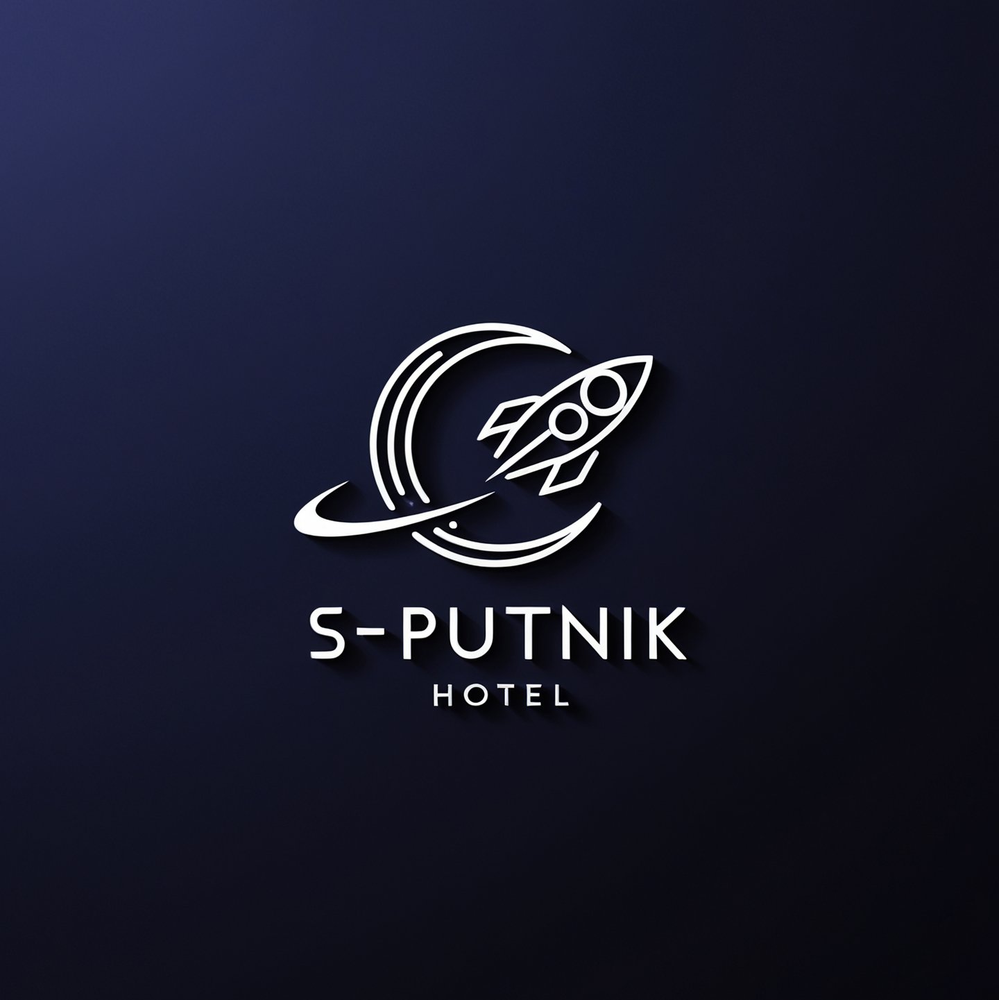 Leonardo Ai / prompt / Vector logo for a hotel with moon and travel aesthetics called «S-PUTNIK». Minimalistic white linear logo on dark blue background, no shadows or gradients. Moon and rocket image on the logo.