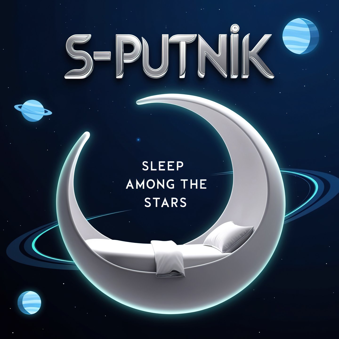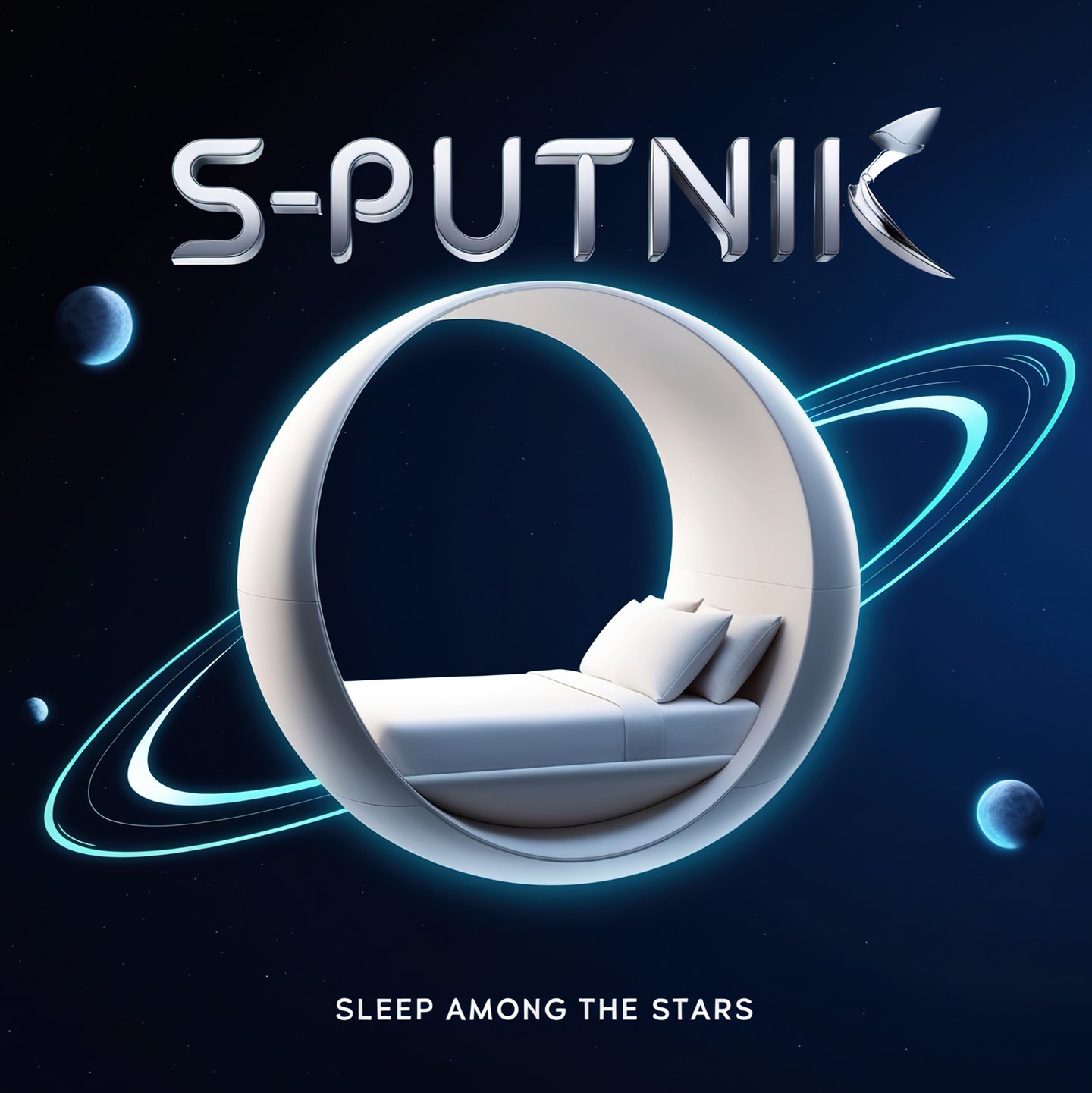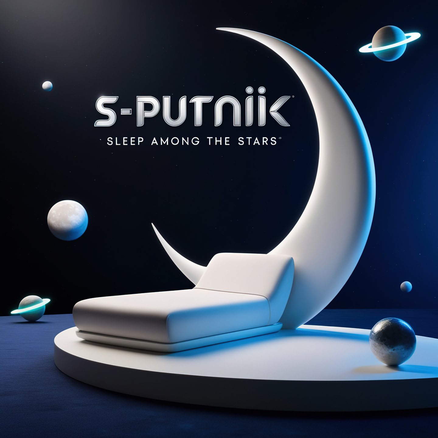 Leonardo Ai / prompt / Generate a vertical advertising poster for a hotel with a lunar and travel aesthetic called «S-PUTNIK». Minimalistic and futuristic poster about rest, sleep, comfort.
