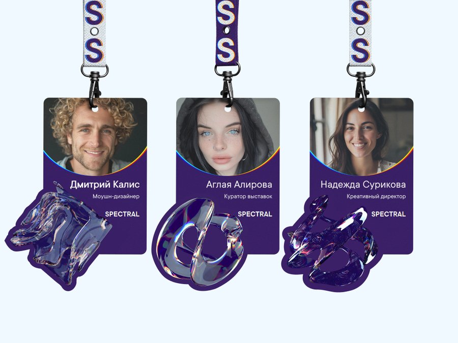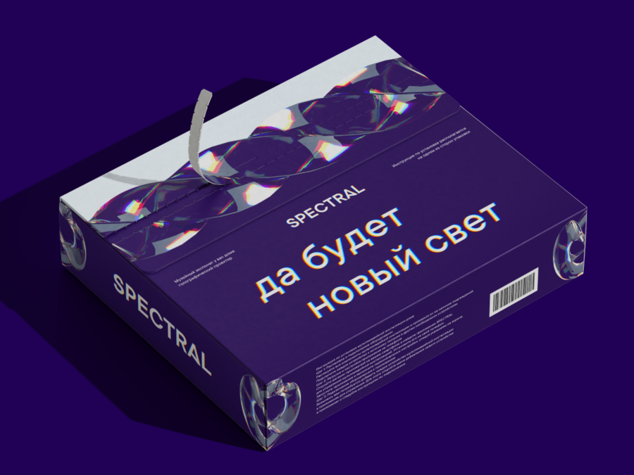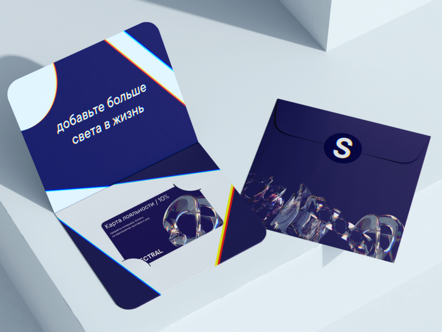 Брендинг работает на уровне текстур и эффектов, повторяющие природу света: можно использовать абстрактные 3D элементы или геометрические фигуры, но все они всегда будут с характерным радужным отливом