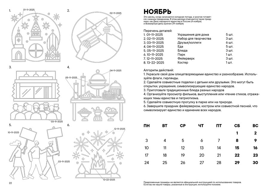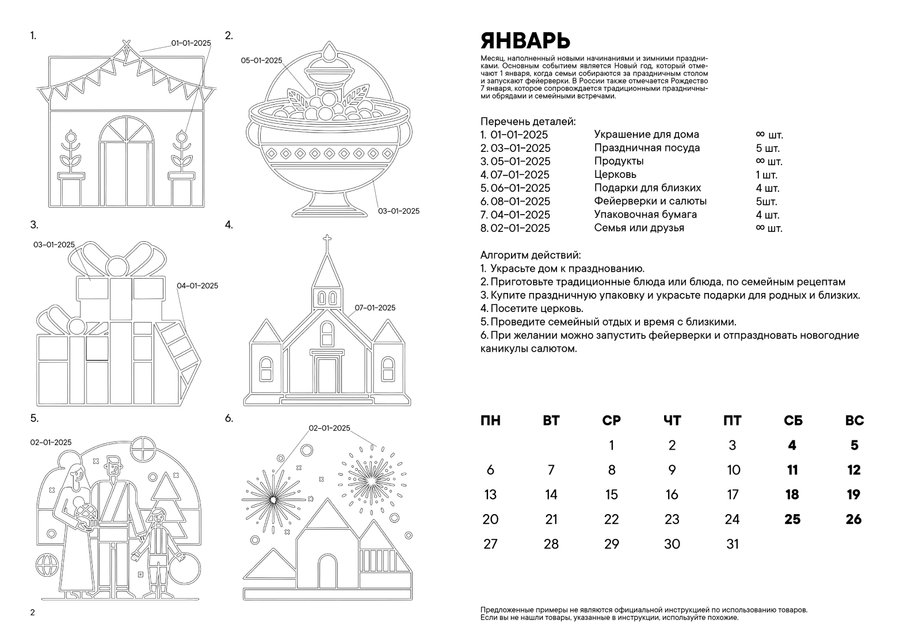 Календарь-инструкция — это четко структурированный план, который охватывает все важные праздники в году и предлагает идеи для их празднования.